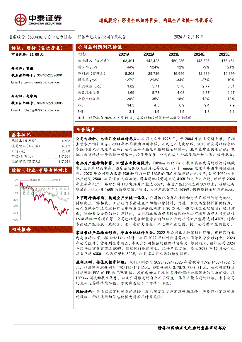 通威股份:中泰证券-通威股份-600438-跻身全球组件巨头,构筑全产业链一体化布局-240219