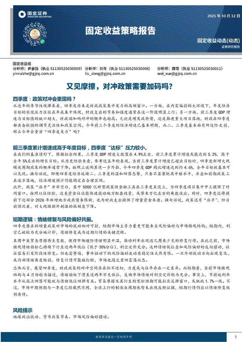 国金证券-固定收益周度策略报告:又见摩擦,对冲政策需要加码吗?-251012