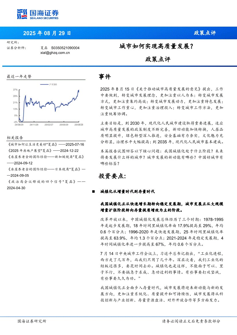 国海证券-政策点评:城市如何实现高质量发展?-250829