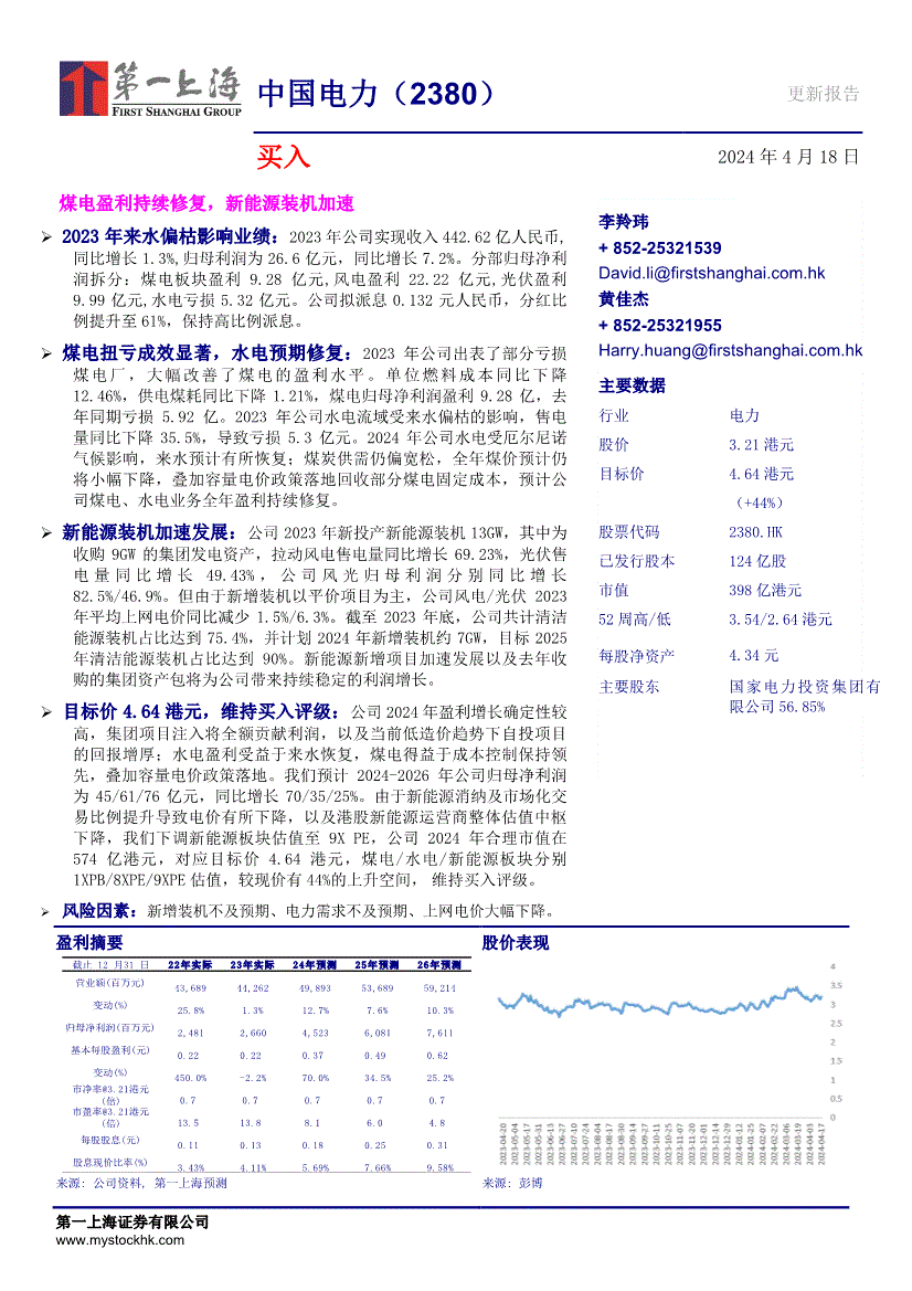 中国电力:第一上海-中国电力-2380.HK-煤电盈利持续修复,新能源装机加速-240418