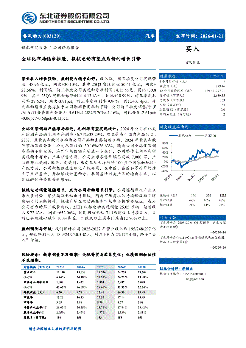 春风动力:东北证券-春风动力-603129-全球化布局稳步推进,极核电动有望成为新的增长引擎-260121