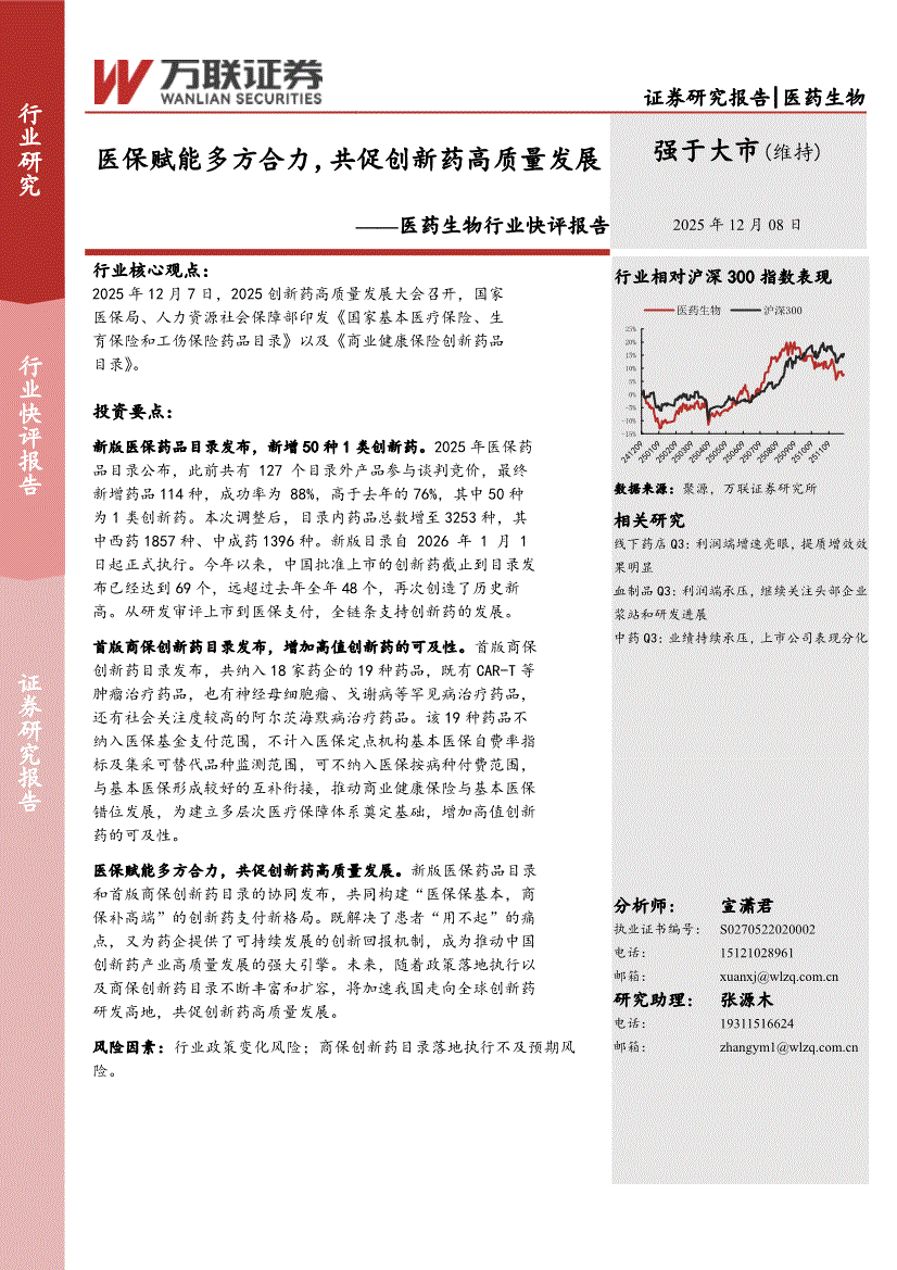 医药生物行业:万联证券-医药生物行业快评报告:医保赋能多方合力,共促创新药高质量发展-251208