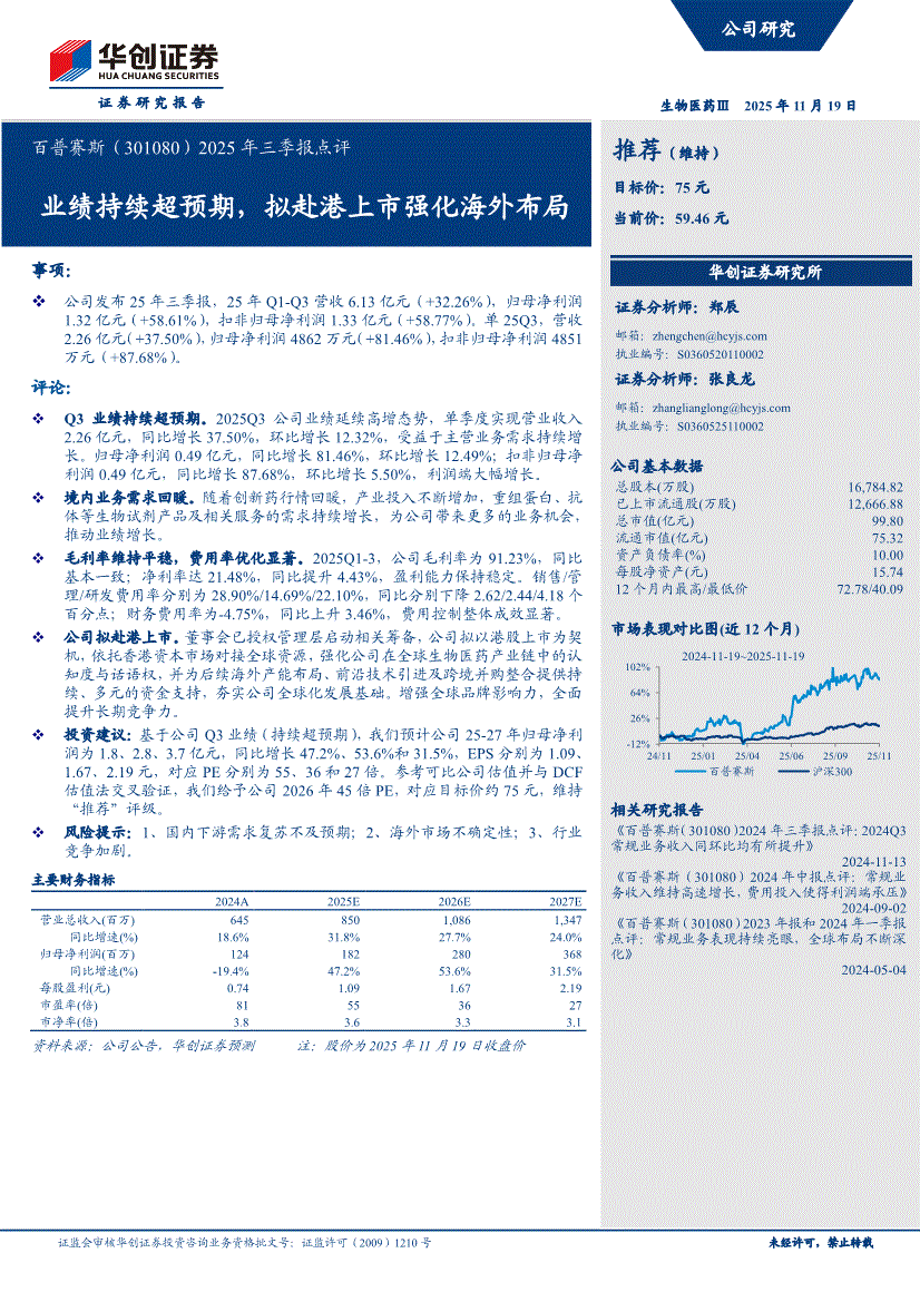 百普赛斯:华创证券-百普赛斯-301080-2025年三季报点评:业绩持续超预期,拟赴港上市强化海外布局-251119