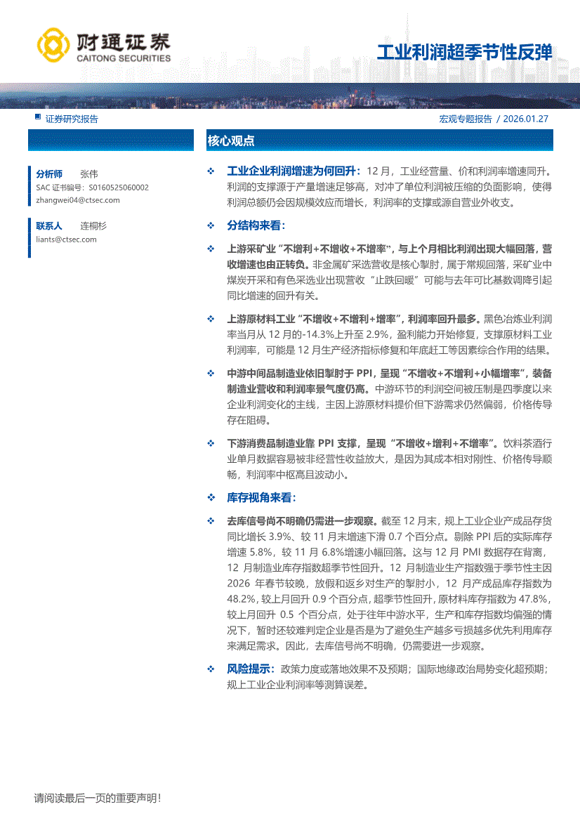 财通证券-宏观专题报告:工业利润超季节性反弹-260127
