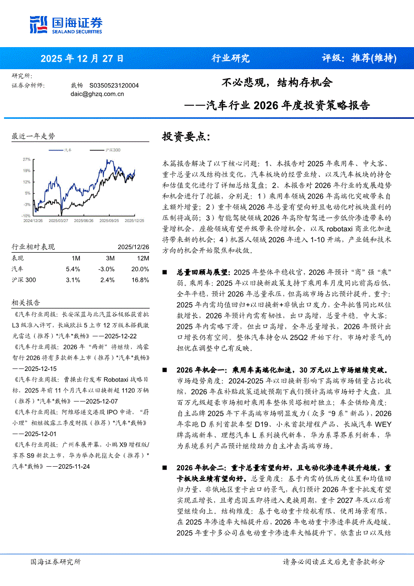 汽车行业:国海证券-汽车行业2026年度投资策略报告:不必悲观,结构存机会-251227
