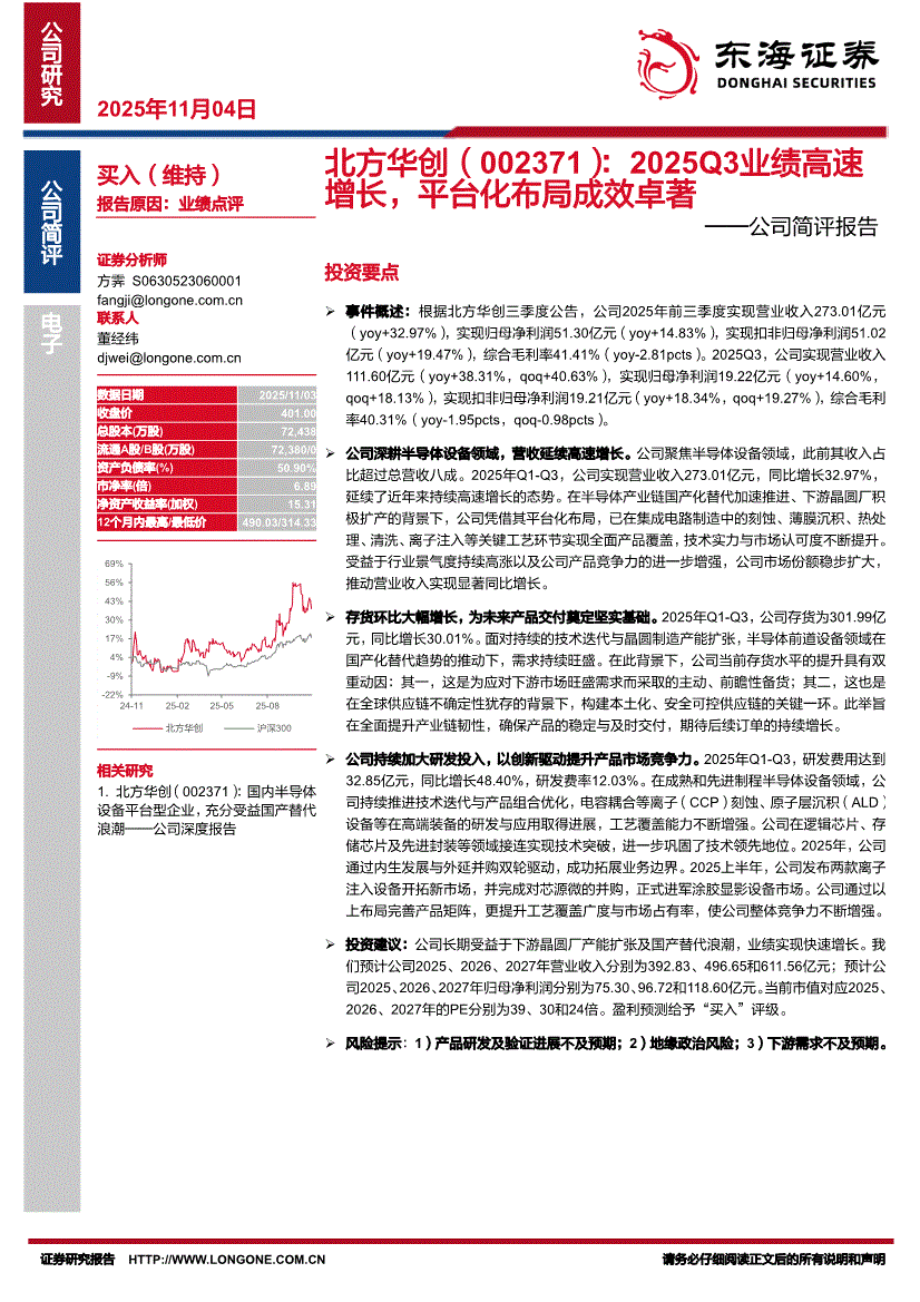 北方华创:东海证券-北方华创-002371-公司简评报告:2025Q3业绩高速增长,平台化布局成效卓著-251104