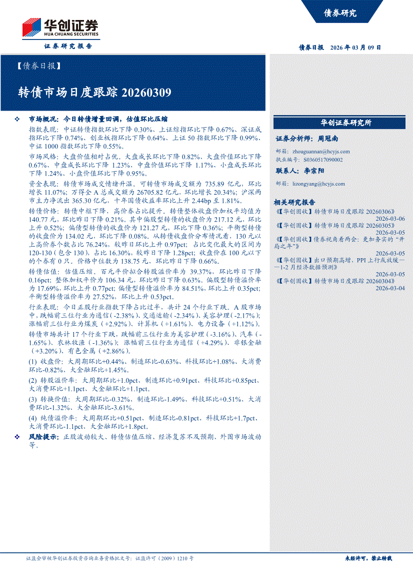 华创证券-【债券日报】转债市场日度跟踪-260309