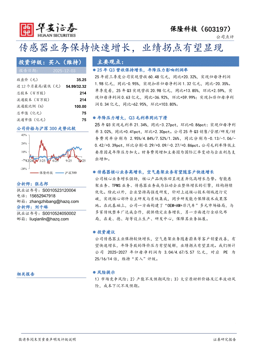 保隆科技:华安证券-保隆科技-603197-传感器业务保持快速增长,业绩拐点有望显现-251203
