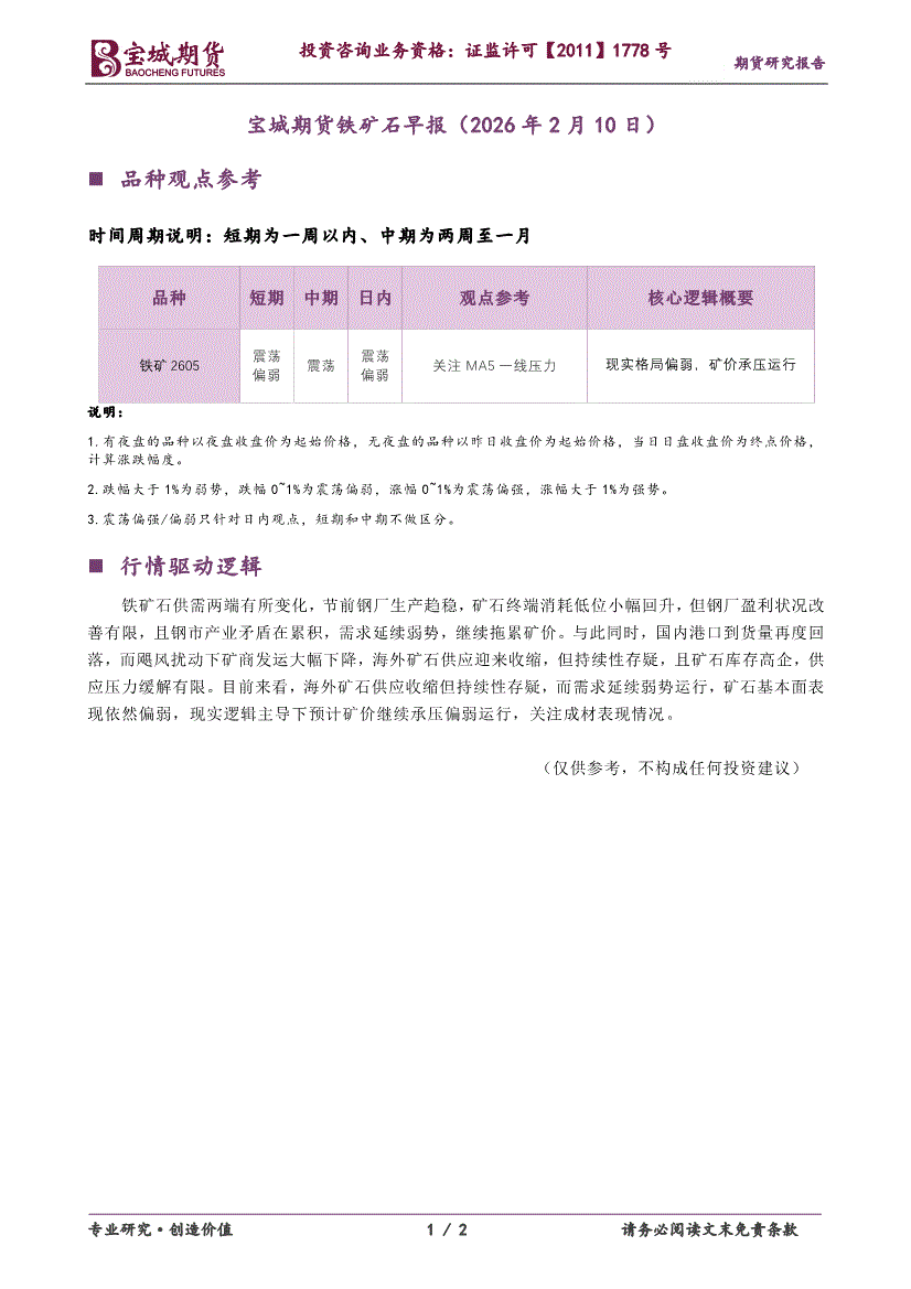 宝城期货-铁矿石早报-260210