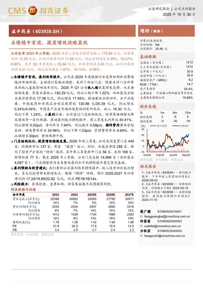 益丰药房:招商证券-益丰药房-603939-业绩稳中有进,提质增效战略显效-251030