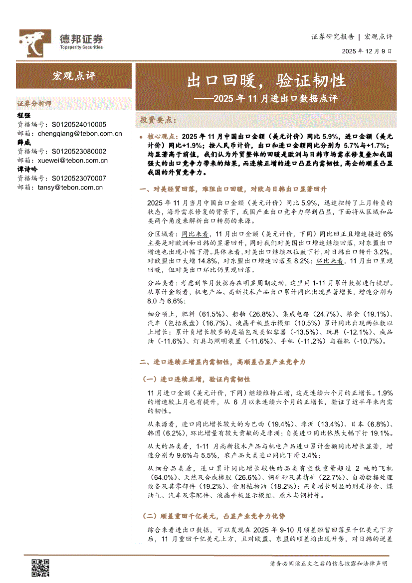 德邦证券-2025年11月进出口数据点评:出口回暖,验证韧性-251209