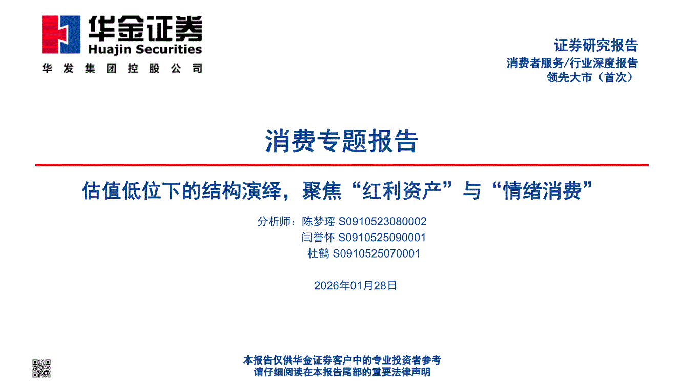 消费行业:华金证券-消费行业专题报告:估值低位下的结构演绎,聚焦“红利资产”与“情绪消费”-260128