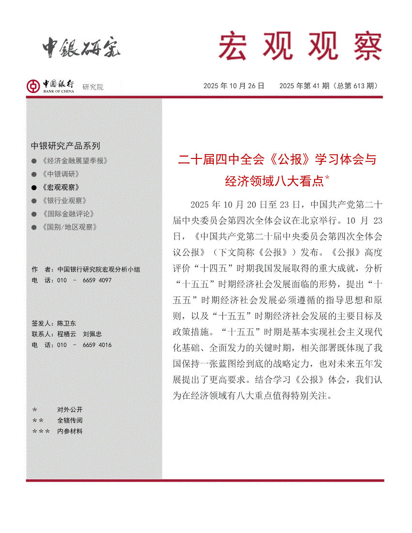 中国银行-宏观观察2025年第41期(总第613期):二十届四中全会《公报》学习体会与经济领域八大看点-251026