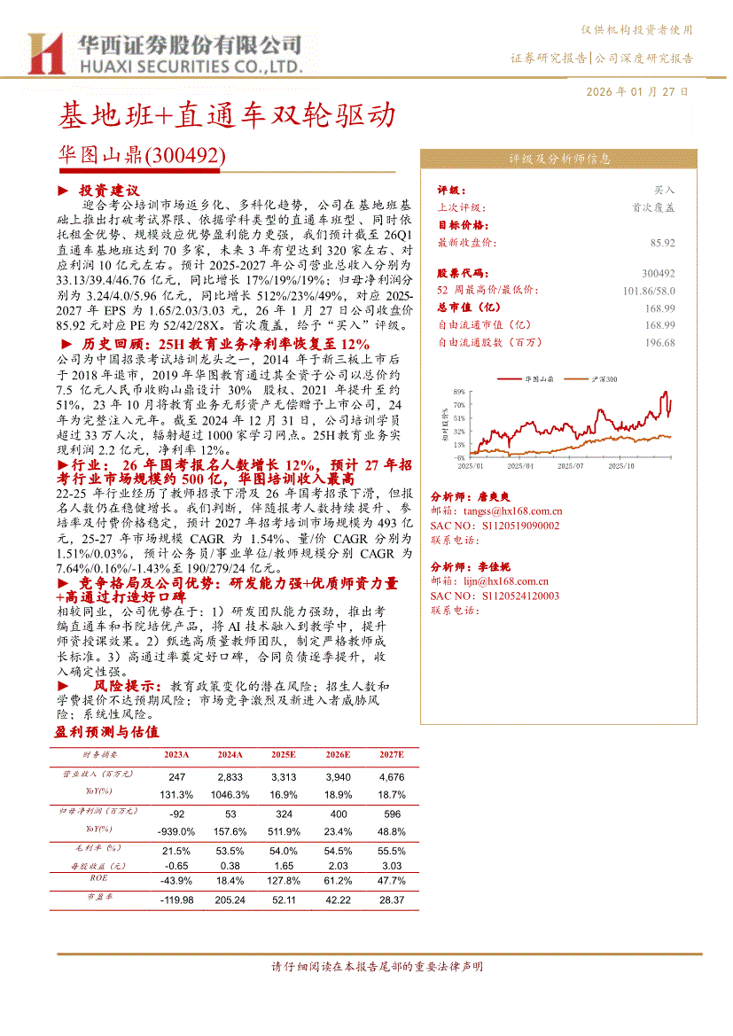 华图山鼎:华西证券-华图山鼎-300492-基地班+直通车双轮驱动-260127