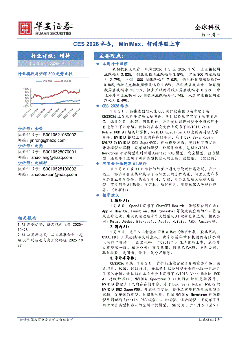 科技行业:华安证券-全球科技行业周报:CES 2026举办,MiniMax、智谱港股上市-260111