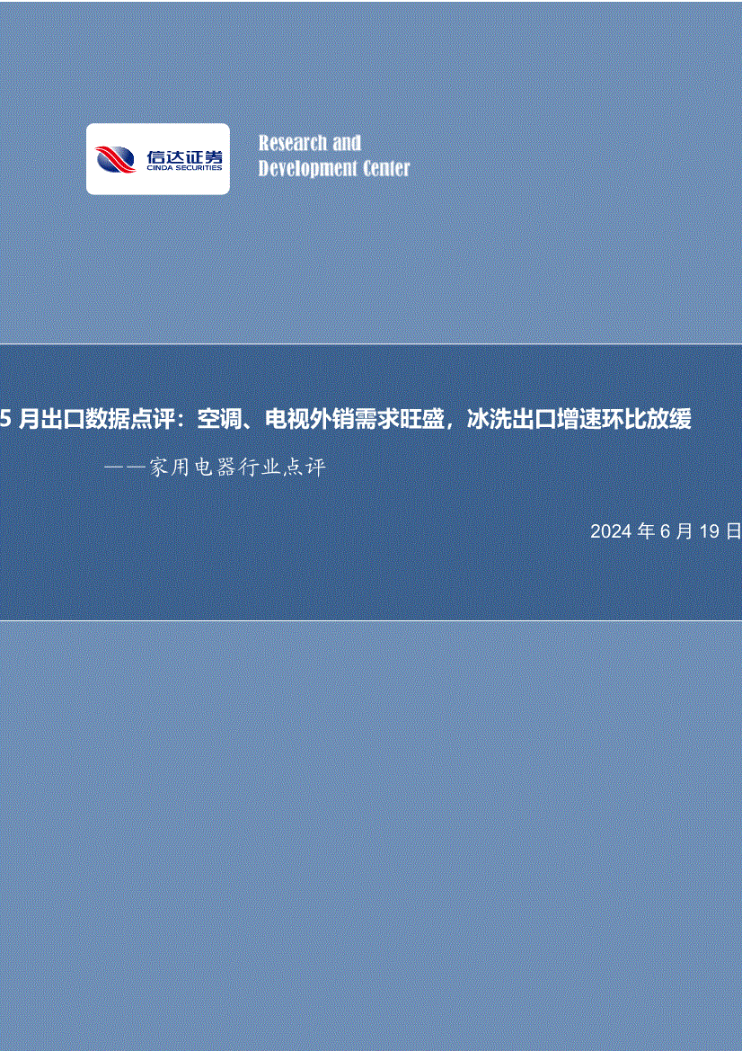 家用电器行业:信达证券-家用电器行业点评:5月出口数据点评,空调、电视外销需求旺盛,冰洗出口增速环比放缓-240619