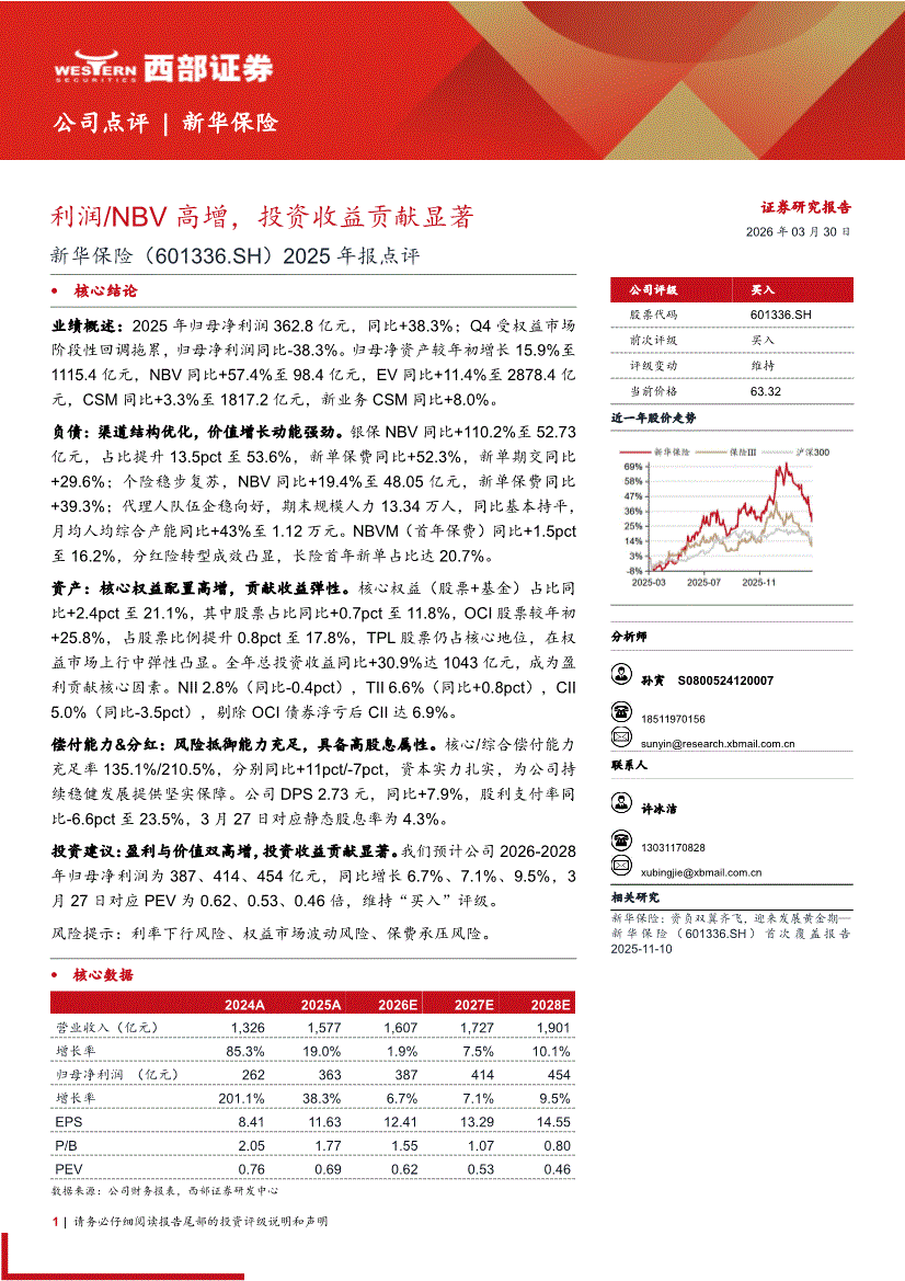 新华保险:西部证券-新华保险-601336-2025年报点评:利润/NBV高增,投资收益贡献显著-260330