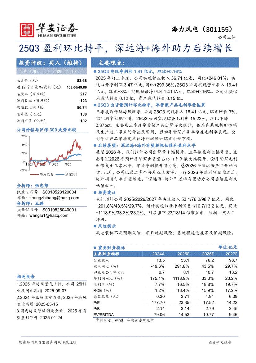 海力风电:华安证券-海力风电-301155-25Q3盈利环比持平,深远海+海外助力后续增长-251119