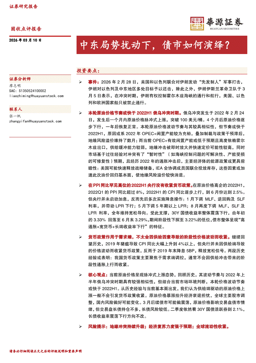 华源证券-固收点评报告:中东局势扰动下,债市如何演绎?-260310
