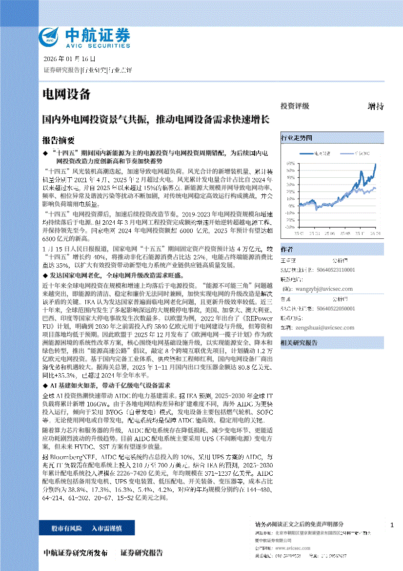 电网设备行业:中航证券-电网设备行业:国内外电网投资景气共振,推动电网设备需求快速增长-260116