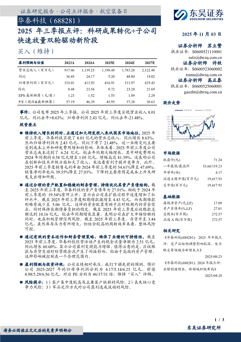 华秦科技:东吴证券-华秦科技-688281-2025年三季报点评:科研成果转化+子公司快速放量双轮驱动新阶段-251103