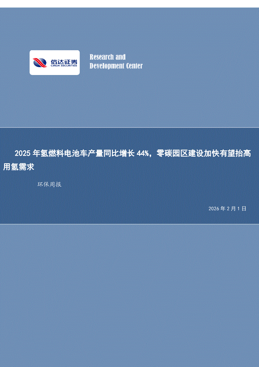 环保行业:信达证券-环保行业周报:2025年氢燃料电池车产量同比增长44%,零碳园区建设加快有望抬高用氢需求-260201