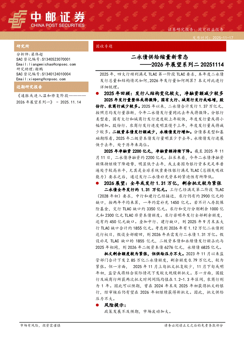 中邮证券-固收专题:二永债供给缩量新常态——2026年展望系列二-251117