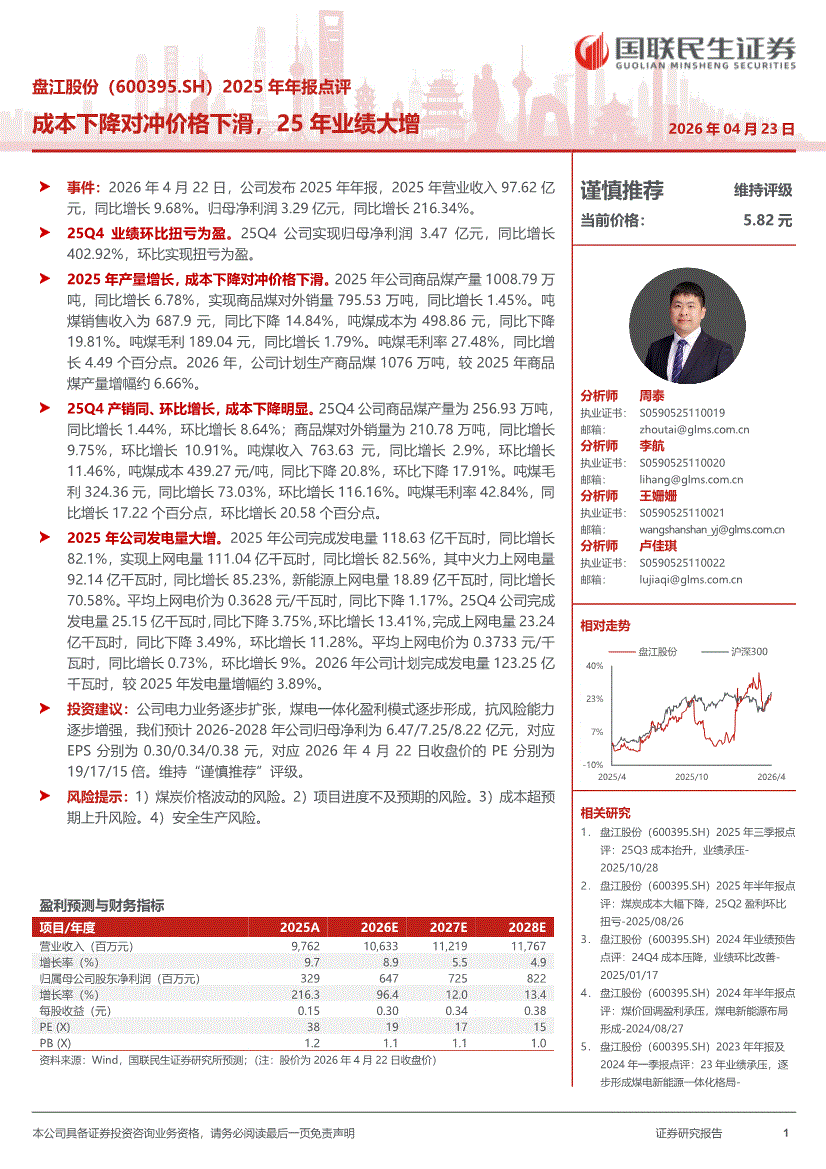 盘江股份:国联民生证券-盘江股份-600395-2025年年报点评:成本下降对冲价格下滑,25年业绩大增-260423
