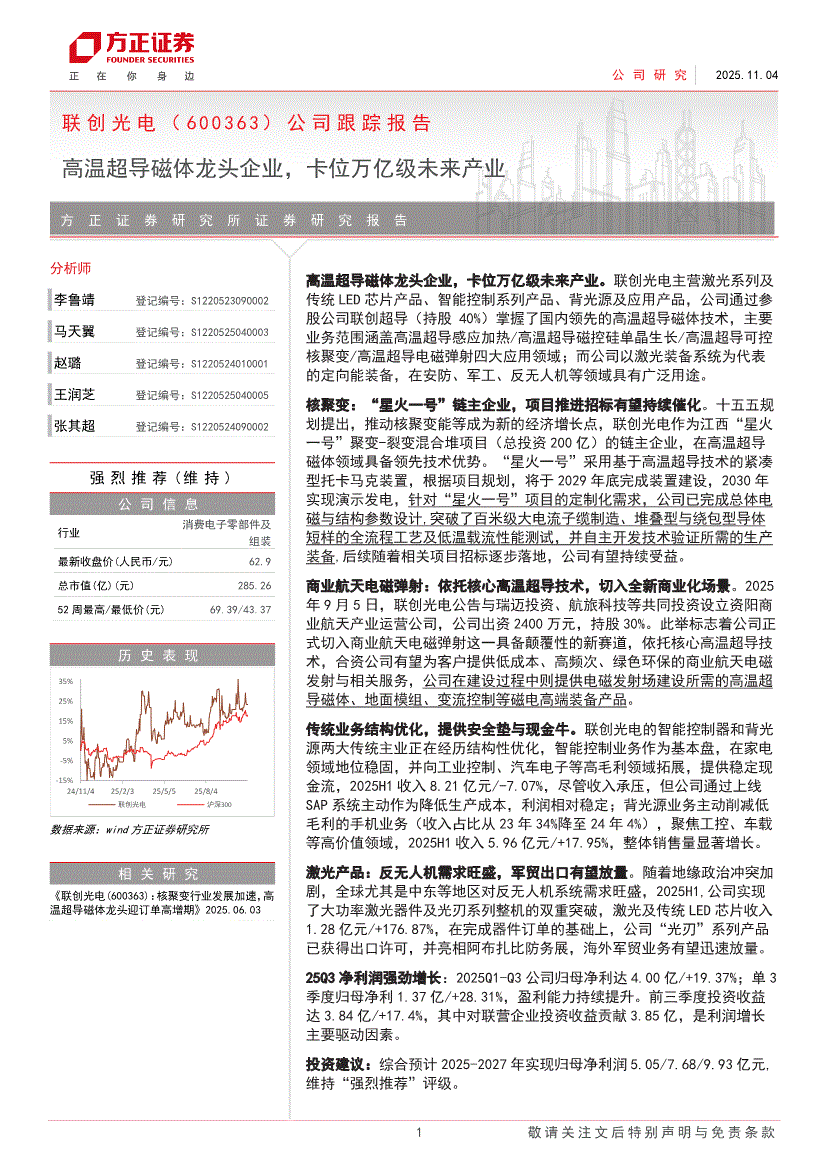 方正证券-联创光电-600363-公司跟踪报告:高温超导磁体龙头企业,卡位万亿级未来产业-251104