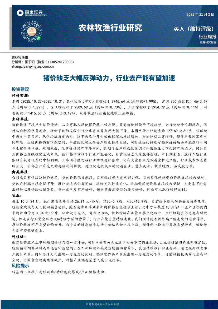 农林牧渔行业:国金证券-农林牧渔行业周报:猪价缺乏大幅反弹动力,行业去产能有望加速-251102