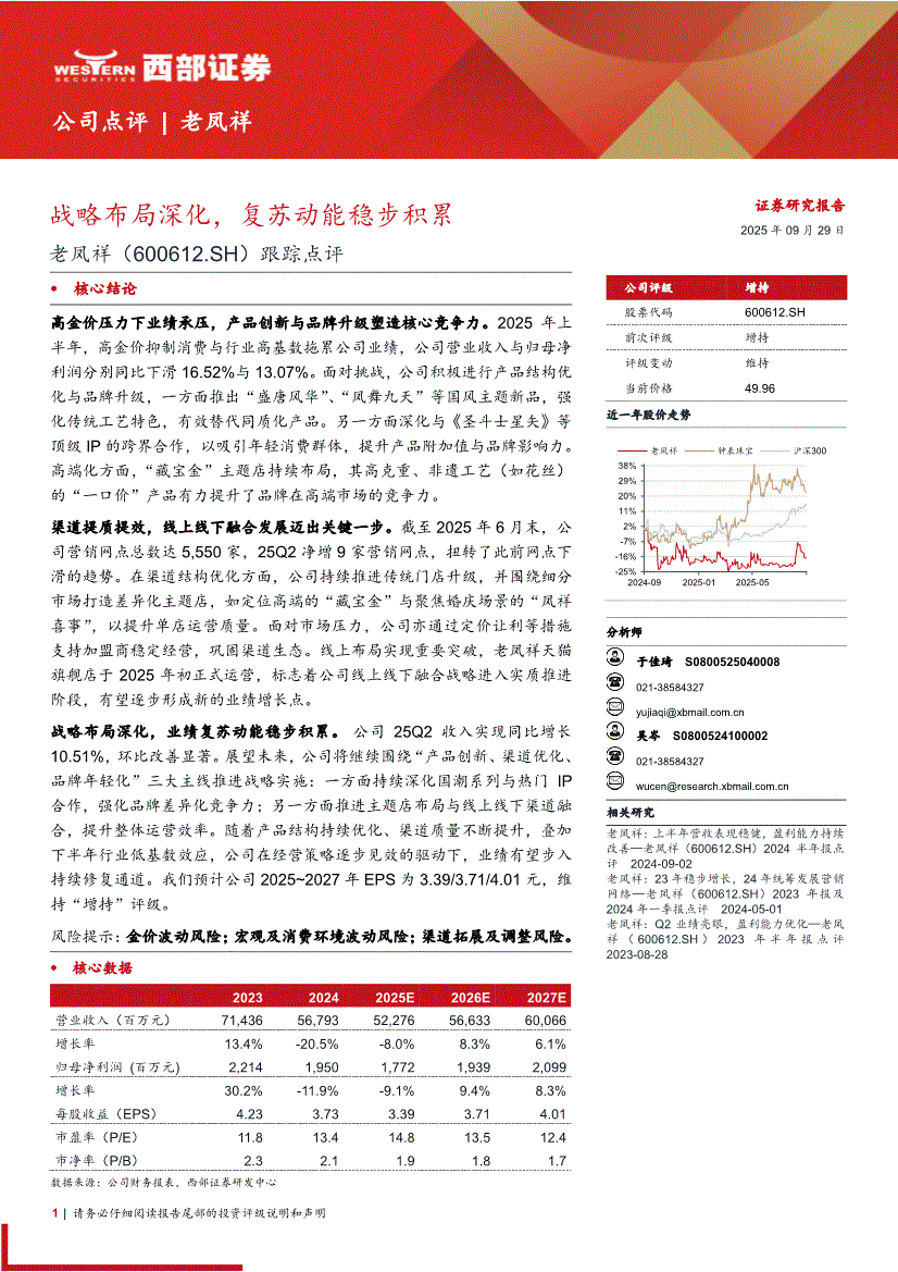 老凤祥:西部证券-老凤祥-600612-跟踪点评:战略布局深化,复苏动能稳步积累-250929