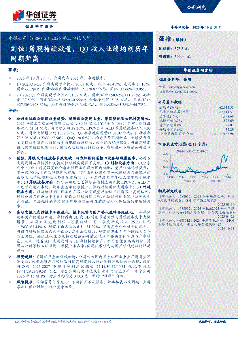 中微公司:华创证券-中微公司-688012-2025年三季报点评:刻蚀+薄膜持续放量,Q3收入业绩均创历年同期新高-251031