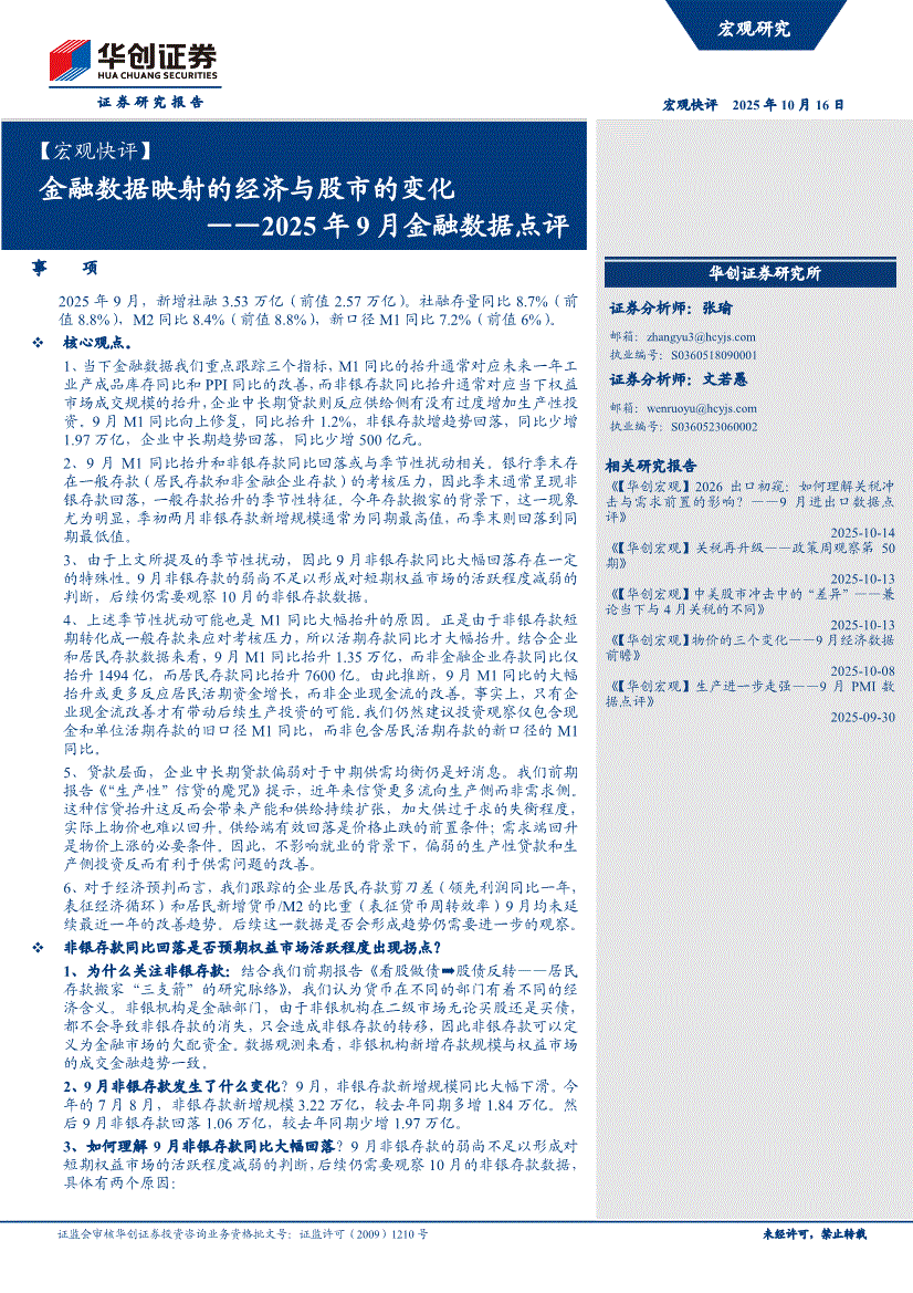 华创证券-【宏观快评】2025年9月金融数据点评:金融数据映射的经济与股市的变化-251016