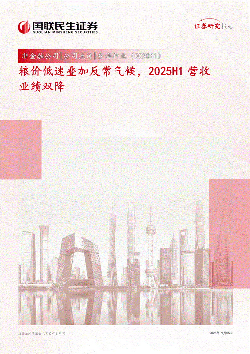 登海种业:国联民生证券-登海种业-002041-粮价低迷叠加反常气候,2025H1营收业绩双降-250905