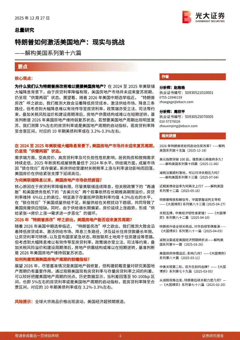 光大证券-解构美国系列第十六篇:特朗普如何激活美国地产,现实与挑战-251227