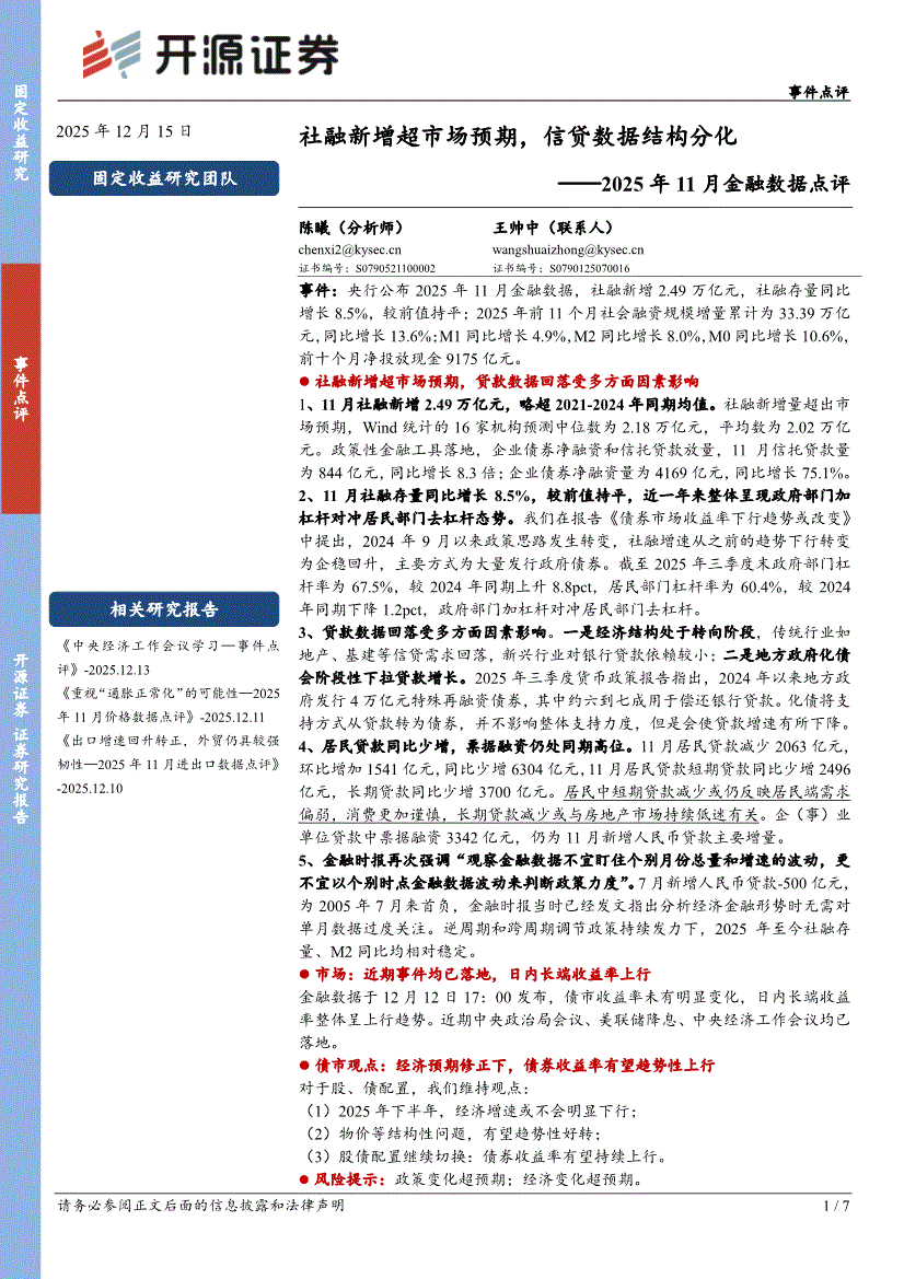 开源证券-2025年11月金融数据点评:社融新增超市场预期,信贷数据结构分化-251215
