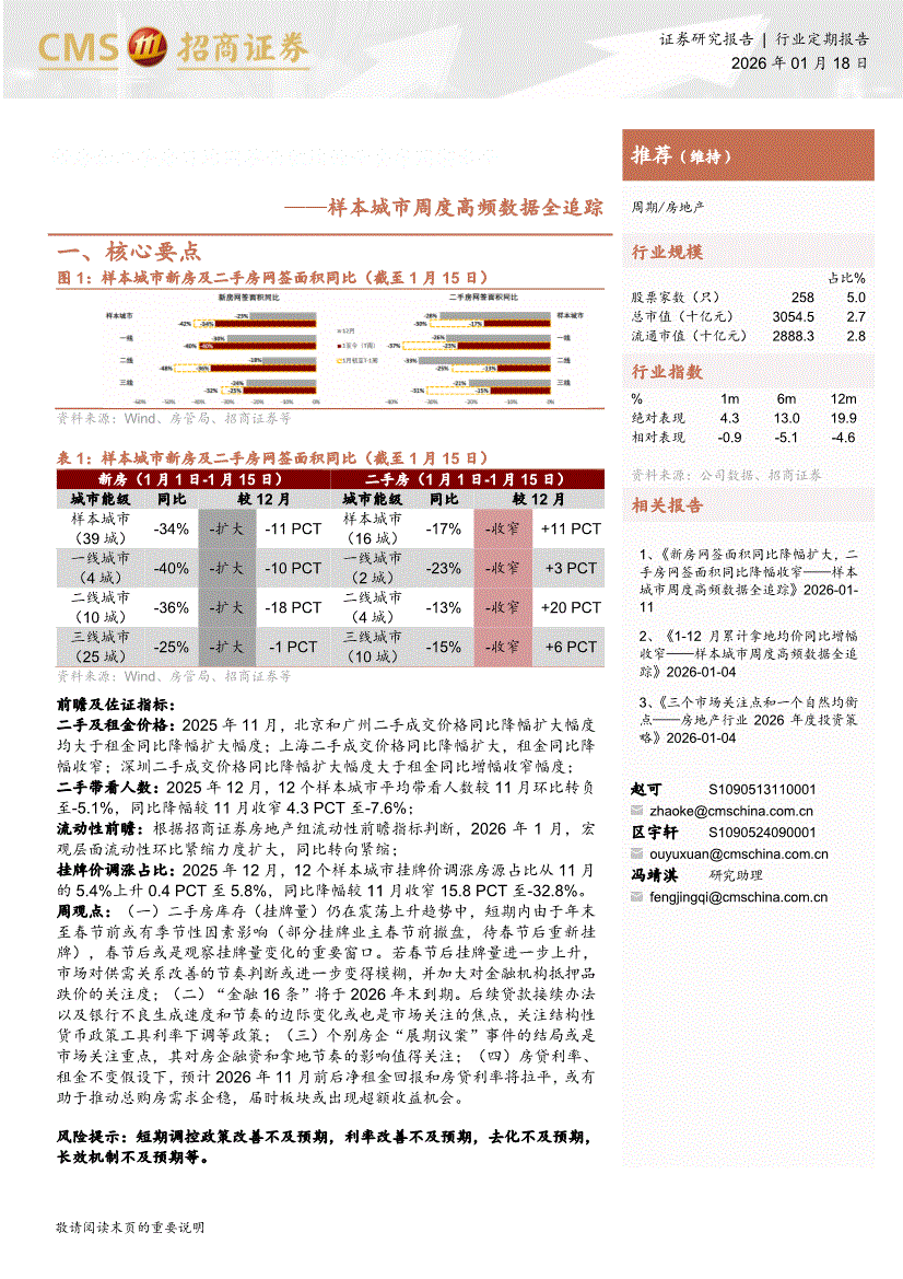 房地产行业:招商证券-房地产行业样本城市周度高频数据全追踪:新房和二手房日均网签面积均低于去年同期水平-260118