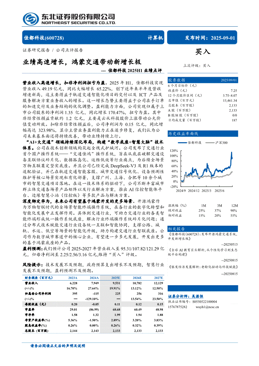 佳都科技:东北证券-佳都科技-600728-2025H1业绩点评:业绩高速增长,鸿蒙交通带动新增长极-250901