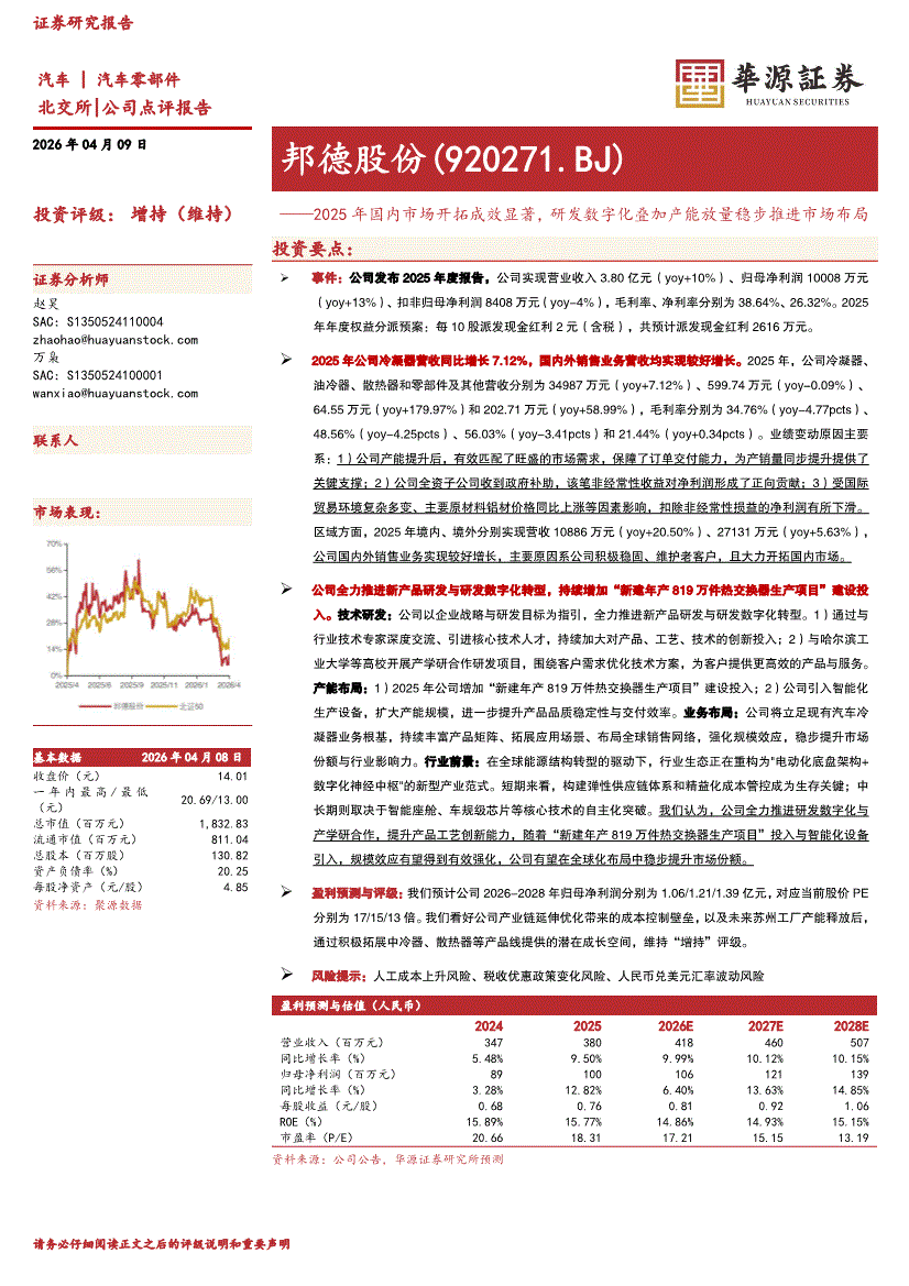 邦德股份:华源证券-邦德股份-920271-2025年国内市场开拓成效显著,研发数字化叠加产能放量稳步推进市场布局-260409