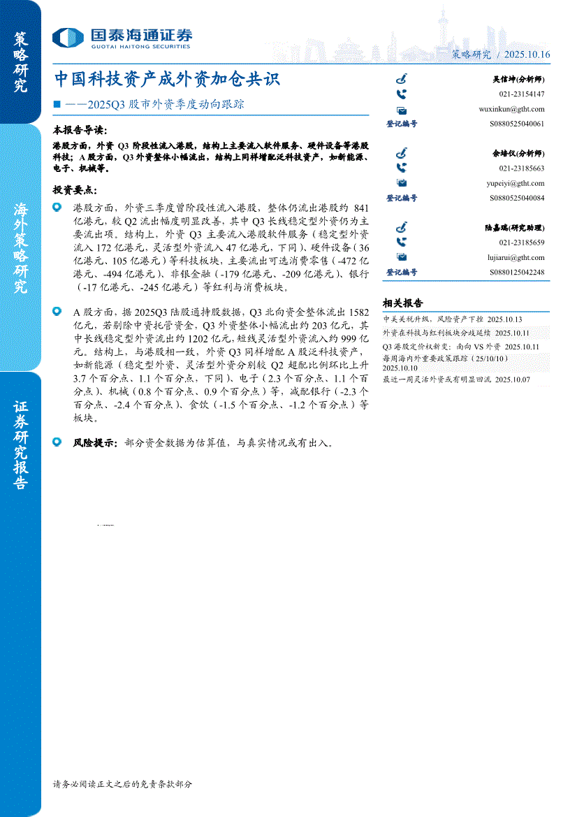 国泰海通证券-2025Q3股市外资季度动向跟踪:中国科技资产成外资加仓共识-251016