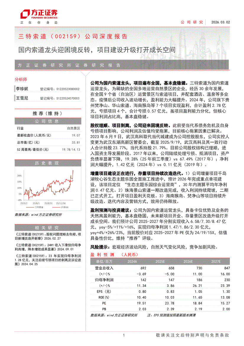 三特索道:方正证券-三特索道-002159-公司深度报告:国内索道龙头迎困境反转,项目建设升级打开成长空间-260302