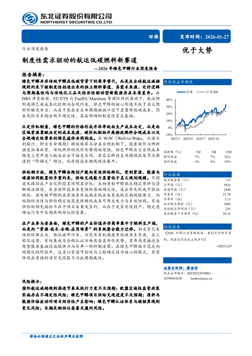环保行业:东北证券-2026年绿色甲醇行业深度报告:制度性需求驱动的航运低碳燃料新赛道-260127