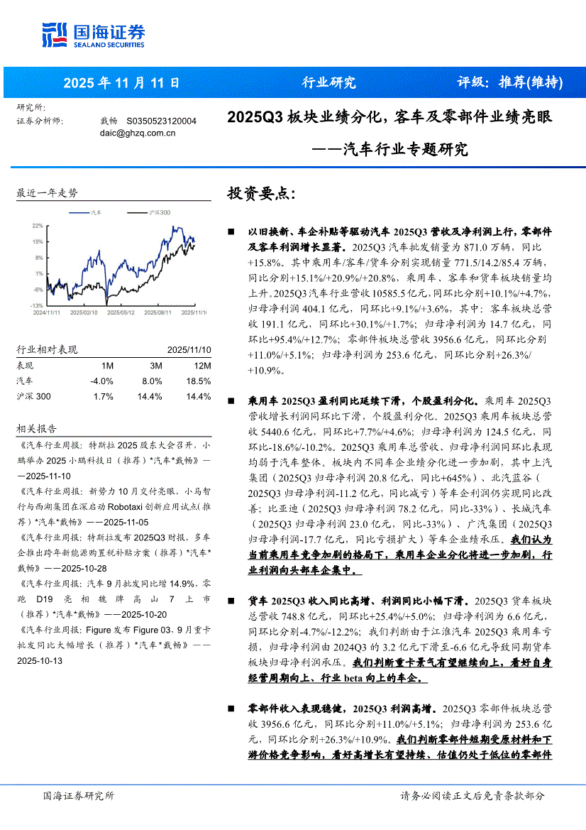 汽车行业:国海证券-汽车行业专题研究:2025Q3板块业绩分化,客车及零部件业绩亮眼-251111