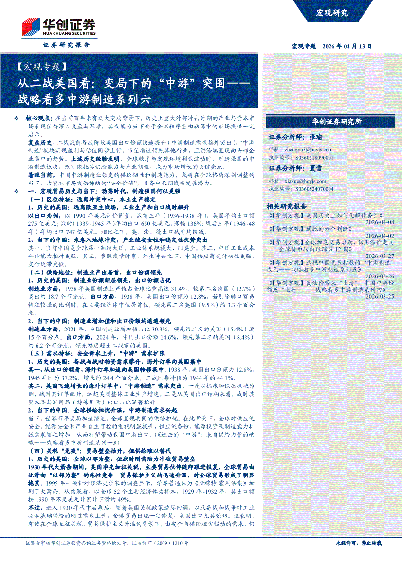 华创证券-【宏观专题】战略看多中游制造系列六:从二战美国看,变局下的“中游”突围-260413