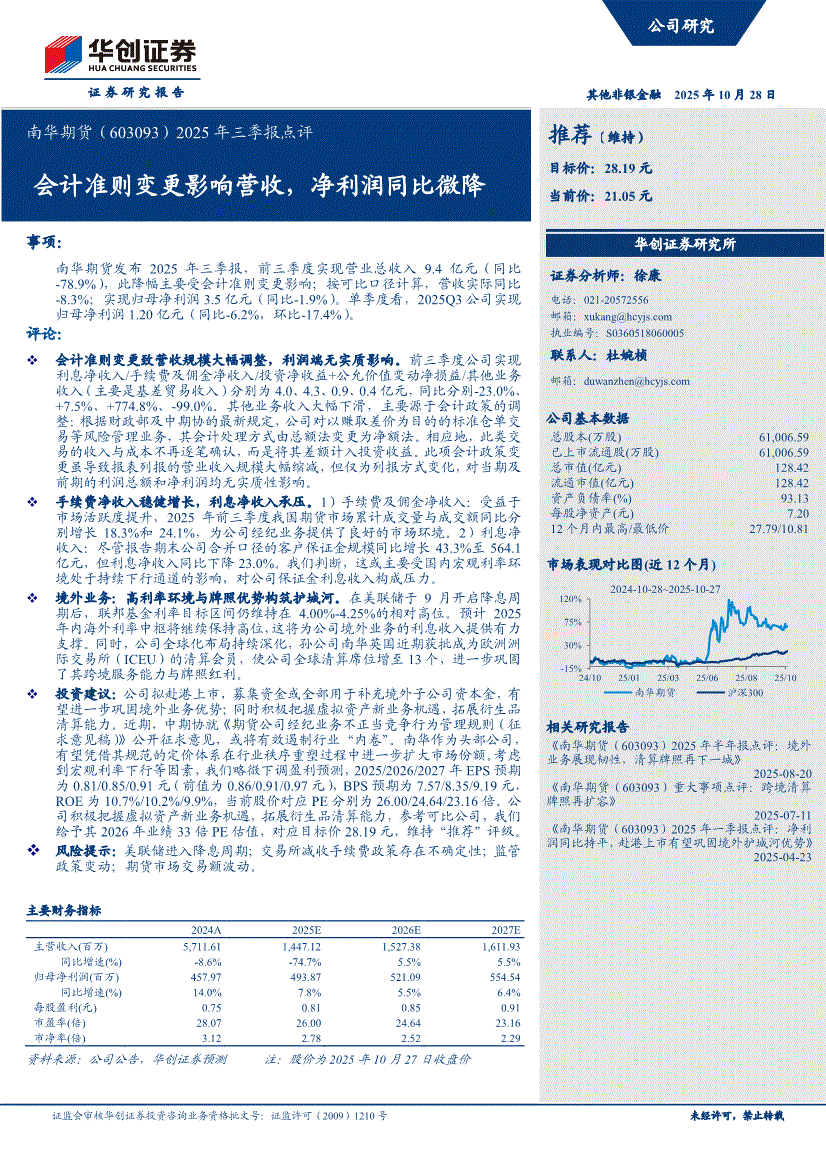 南华期货:华创证券-南华期货-603093-2025年三季报点评:会计准则变更影响营收,净利润同比微降-251028