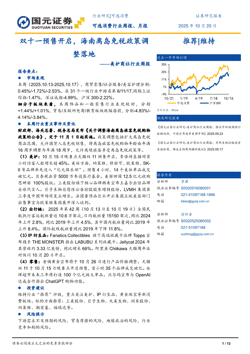 美护商社行业:国元证券-美护商社行业周报:双十一预售开启,海南离岛免税政策调整落地-251020