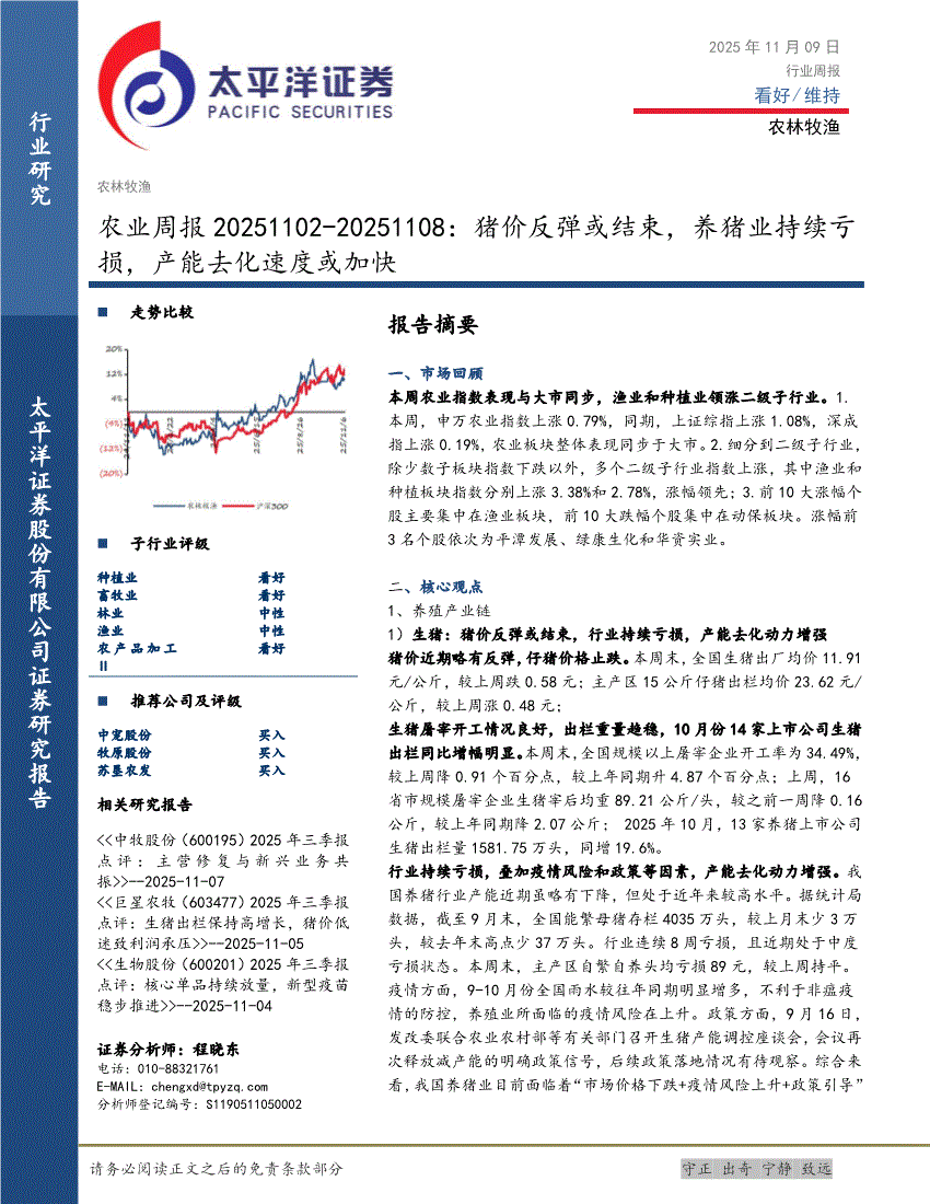 太平洋证券-农业周报:养猪业持续亏损,产能去化速度或加快-251102