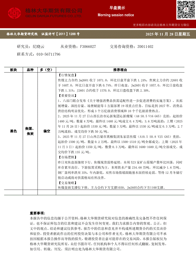 格林大华期货-早盘提示:双焦-251128