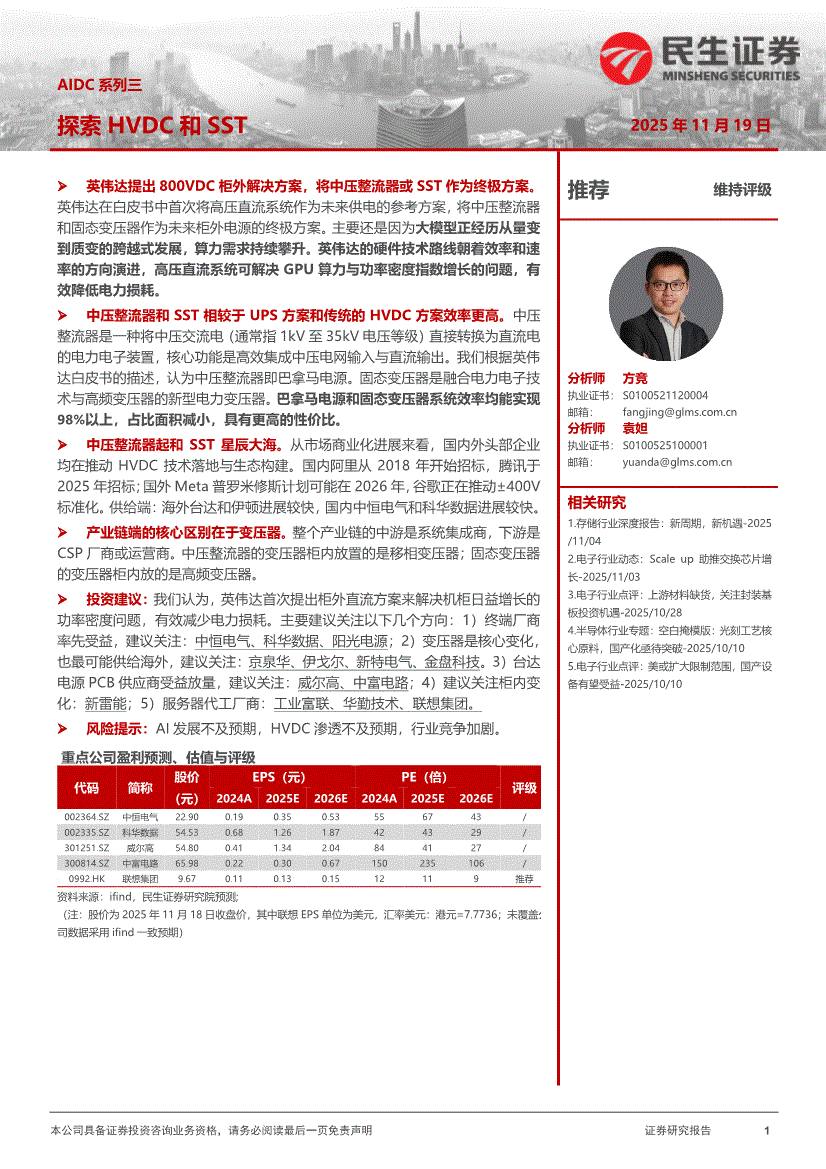 电子行业:民生证券-电子行业AIDC系列三:探索HVDC和SST-251119