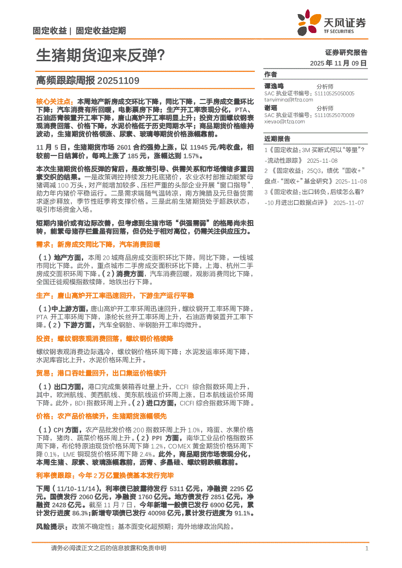天风证券-高频跟踪周报:生猪期货迎来反弹?-251109